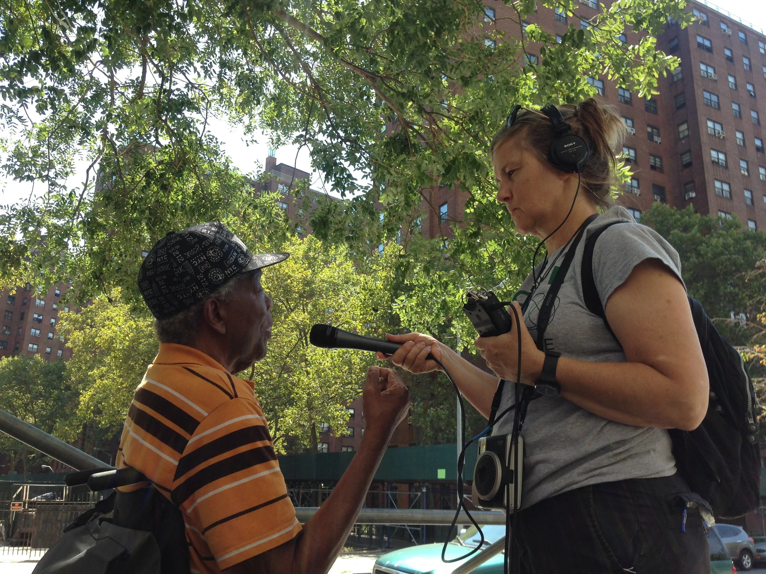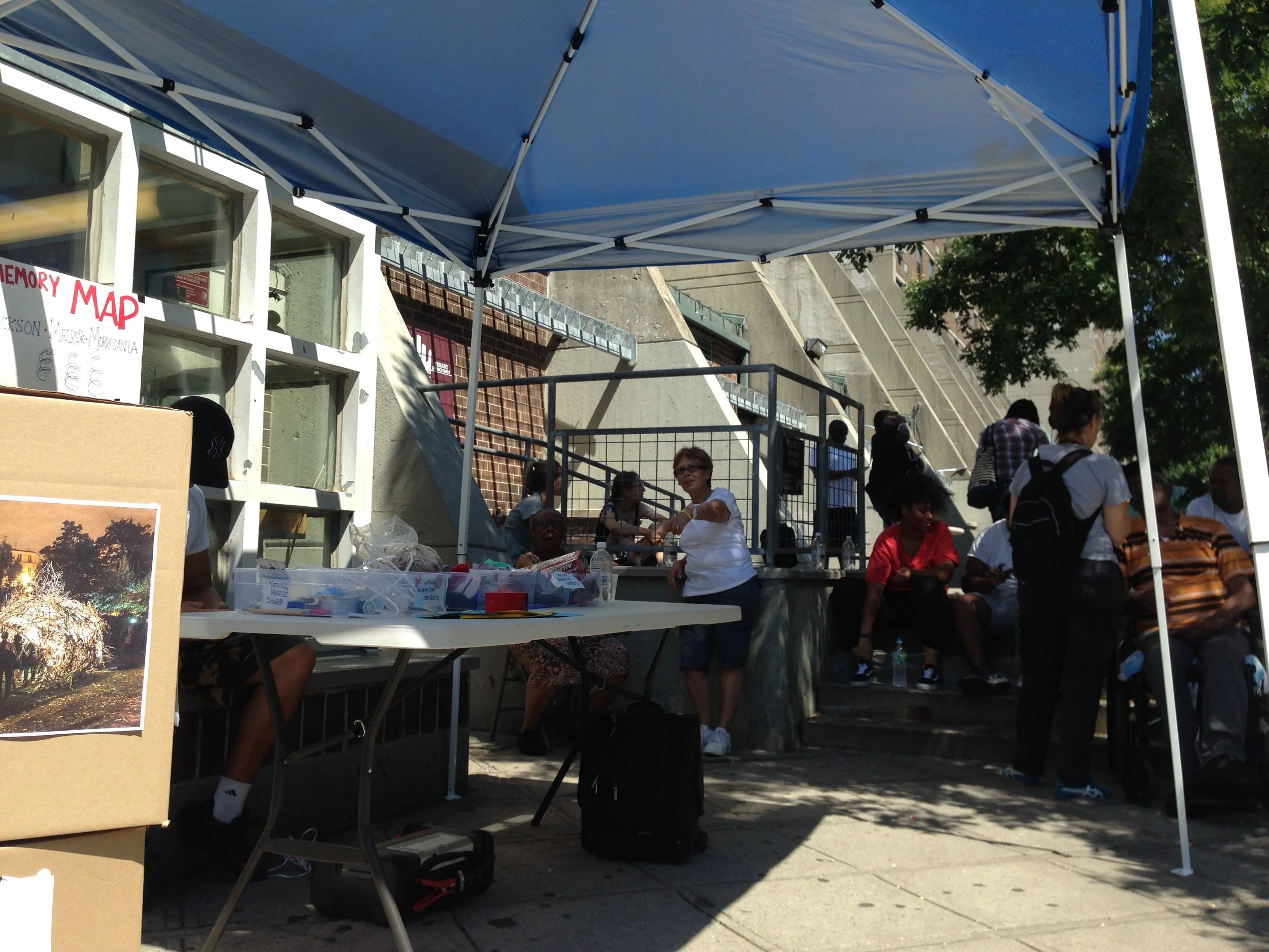 In August at Morrisania Air Rights -- COCOON workshop -- talking about history, how rich it is, and also who is after everything -- the best icy man -- up in Joyce Kilmer Park near the fountain (cherry or mango and sometimes both together all at the same time) -- especially if you're riding your bike.