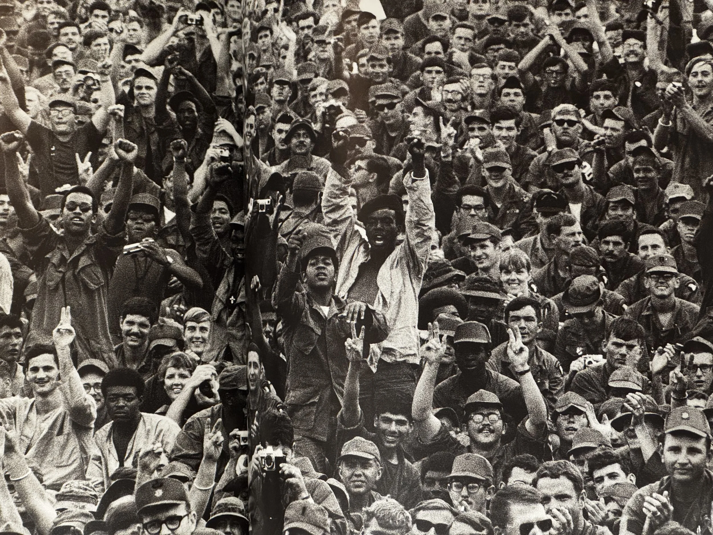 Partial photo from the book Under Fire was taken by David Burnett, 1971 at a USO concert in Da Nang.